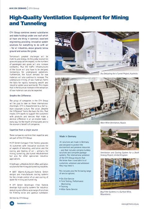 High-Quality Ventilation Equipment CFT Sprache Deutsch German-Australian Business News Ausgabe 4-2019 englisch Cover: https://cfh-group.de/cfh-files/presse/presseartikel_ahk_bus.news_.pdf