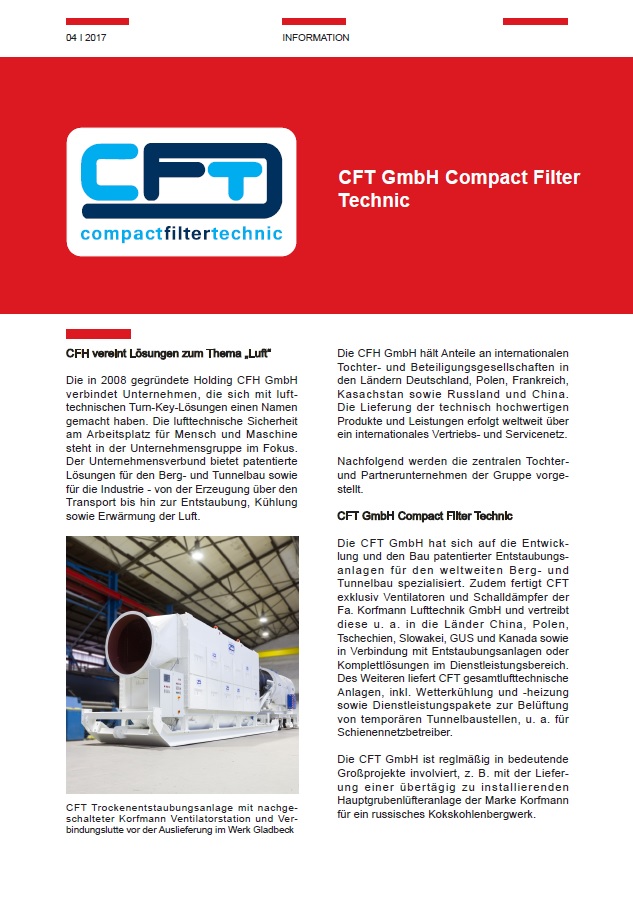 CFH profil firmy CFT Język Polski Magazyn CIHD wydanie 33 - kwiecień 2017 niemiecki Cover: https://cfh-group.de/cfh-files/presse/cfh_firmenportrait_-_cihd_magazin_-_deutsch.pdf